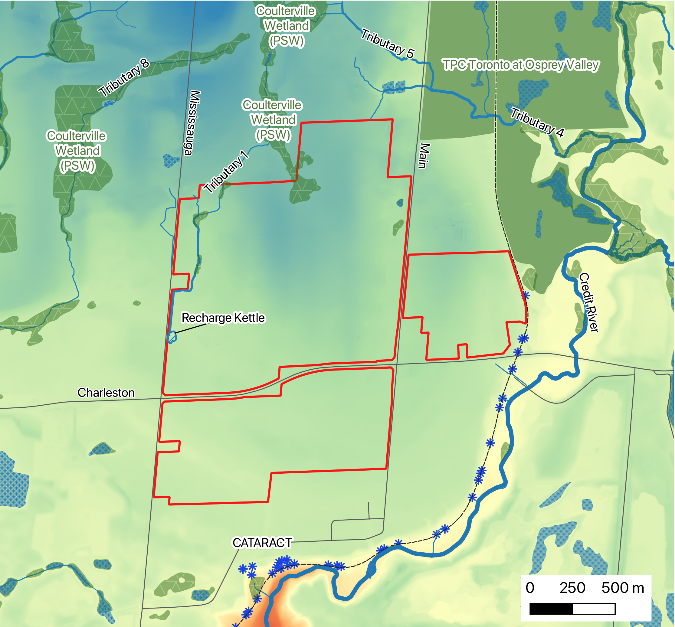 - provides permanent water flow to the Credit River along tow paths, including east into the Credit River through Osprey Valley Golf Course